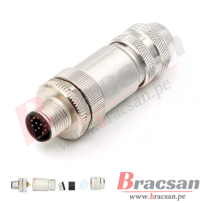 CONECTOR M12 RECTO DE 12 PINES MACHO TIPO A METALICO PG9 PARA SOLDAR BS CONNECTOR M12-12MR-M