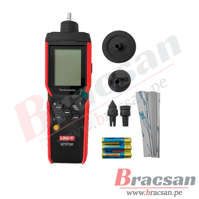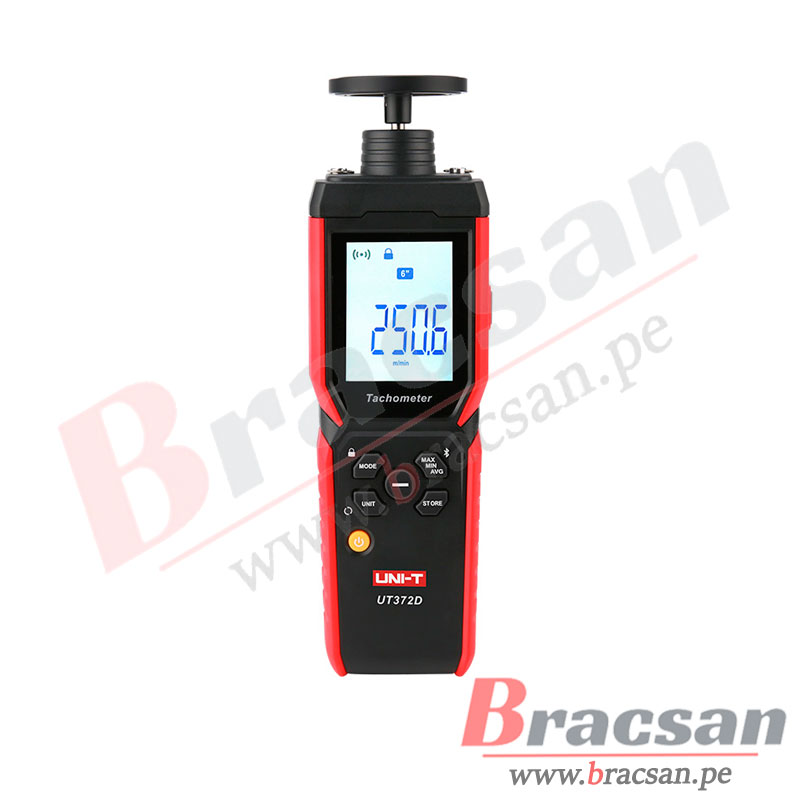 InicioTiendaInstrumentosMultimetros digitalesTACOMETRO DIGITAL 2 EN 1 (RPM POR CONTACTO Y RPM SIN CONTACTO), BLUETOOTH, PANTALLA LCD GIRATORIO UNI-T UT-372D